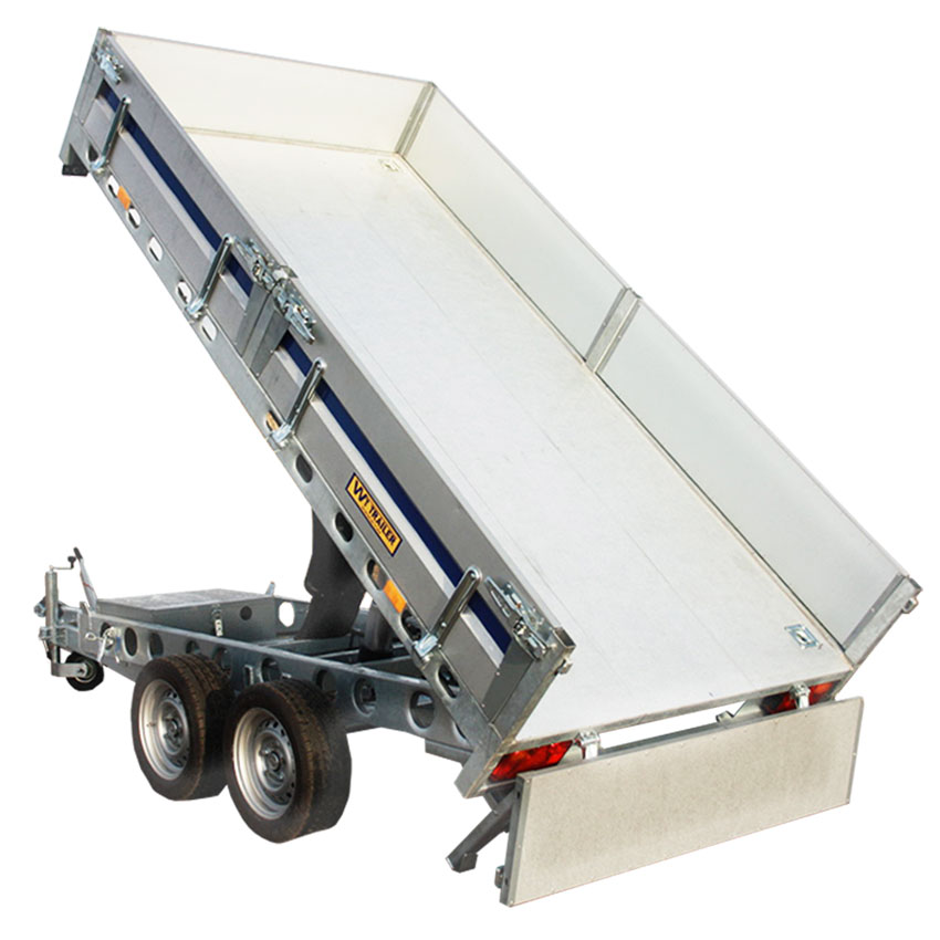 Med våra elhydrauliska tippsläp kan du enkelt och ergonomiskt lasta av material med fjärrkontroll, vilket sparar både tid och fysisk ansträngning. Dessa släp är särskilt populära inom bygg- och anläggningsbranschen där effektiv materialhantering är avgörande för produktiviteten.