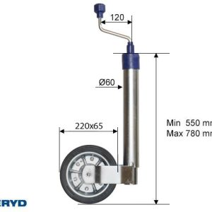 Stödhjul Ø60mm med stålfälg. Fullgummihjul 220x65mm. Belastning 250kg