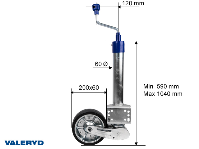 Släpvagn » Produkter » Tillbehör & Reservdelar till Släpvagn » Stödhjul / stödben » Stödhjul och stödben » Automatstödhjul Ø60mm rund, stålfälg, Fullgummihjul 200x60mm Belastning 500kg. Fäste bygel
