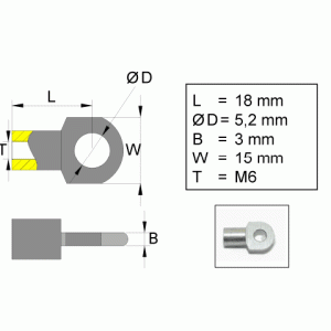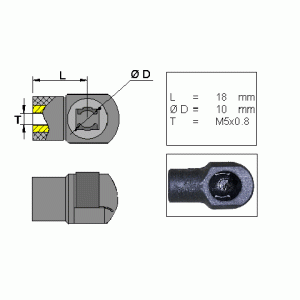 Fästögla för gasfjäder; L=18; M6, max 150N