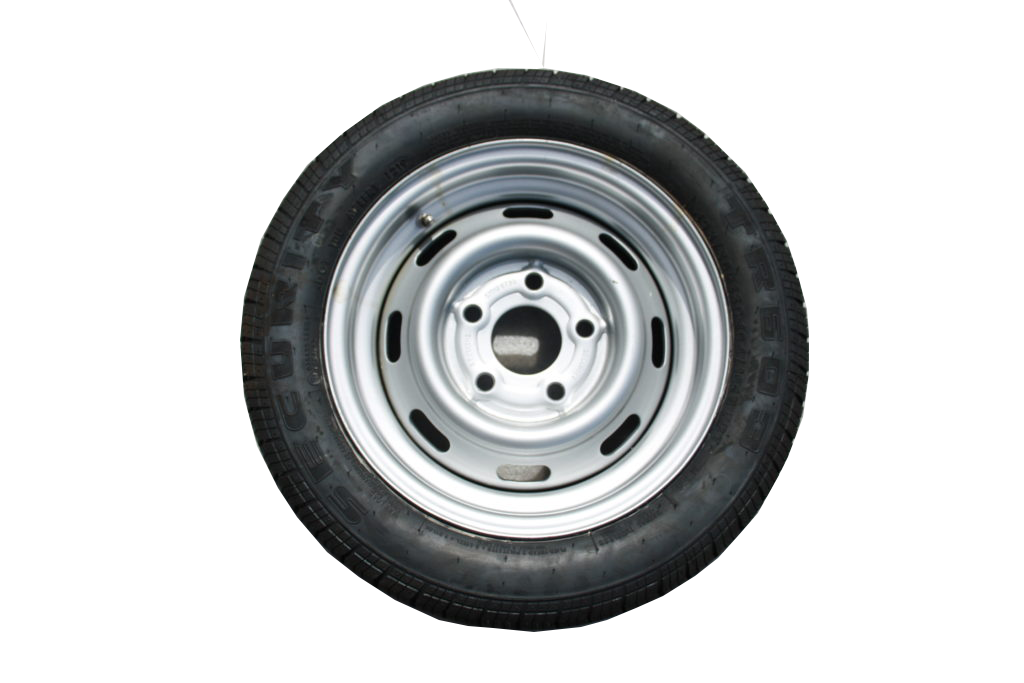 Sommardäck + fälg 13tum, 5 bultar, 165 R / 13C för släp med 1 axel med totalvikt 1300 kg
