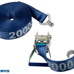 Spännbandsset 50mm med dubbla J-krokar. Längd 0,5+16,5m. 2000 kg (daN)
